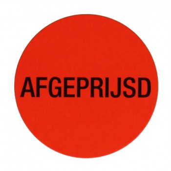 F906 rol @ 2.000 etiketten permanent rond 35 mm fluor rood met zwart bedrukt afgeprijsd