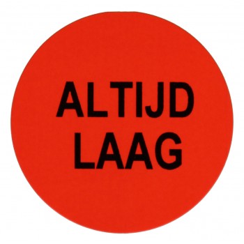 F925 rol @ 2.000 etiketten permanent rond 35 mm fluor rood zwart bedrukt altijd laag