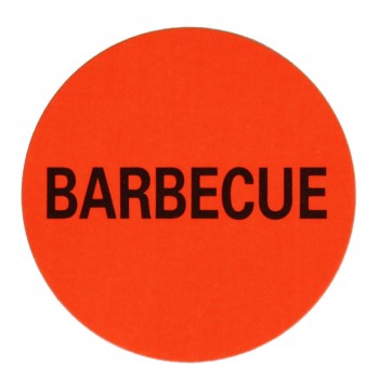 F918 rol @ 2.000 etiketten permanent rond 35 mm fluor rood met zwart bedrukt barbecue