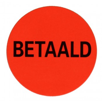 F919 rol @ 2.000 etiketten permanent rond 35 mm fluor rood met zwart bedrukt betaald