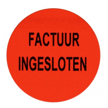 F913 rol @ 2.000 etiketten permanent rond 35 mm fluor rood met zwart bedrukt factuur ingesloten