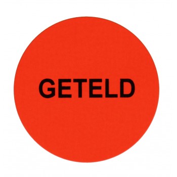 F914 rol @ 2.000 etiketten permanent rond 35 mm fluor rood met zwart bedrukt geteld