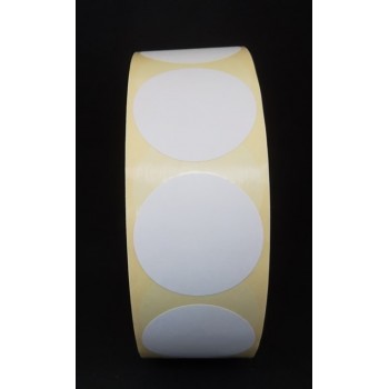 Rond 35 mm. wit permanent blanco.Rol @ 2.000 stuks.Grotere aantallen op aanvraag.